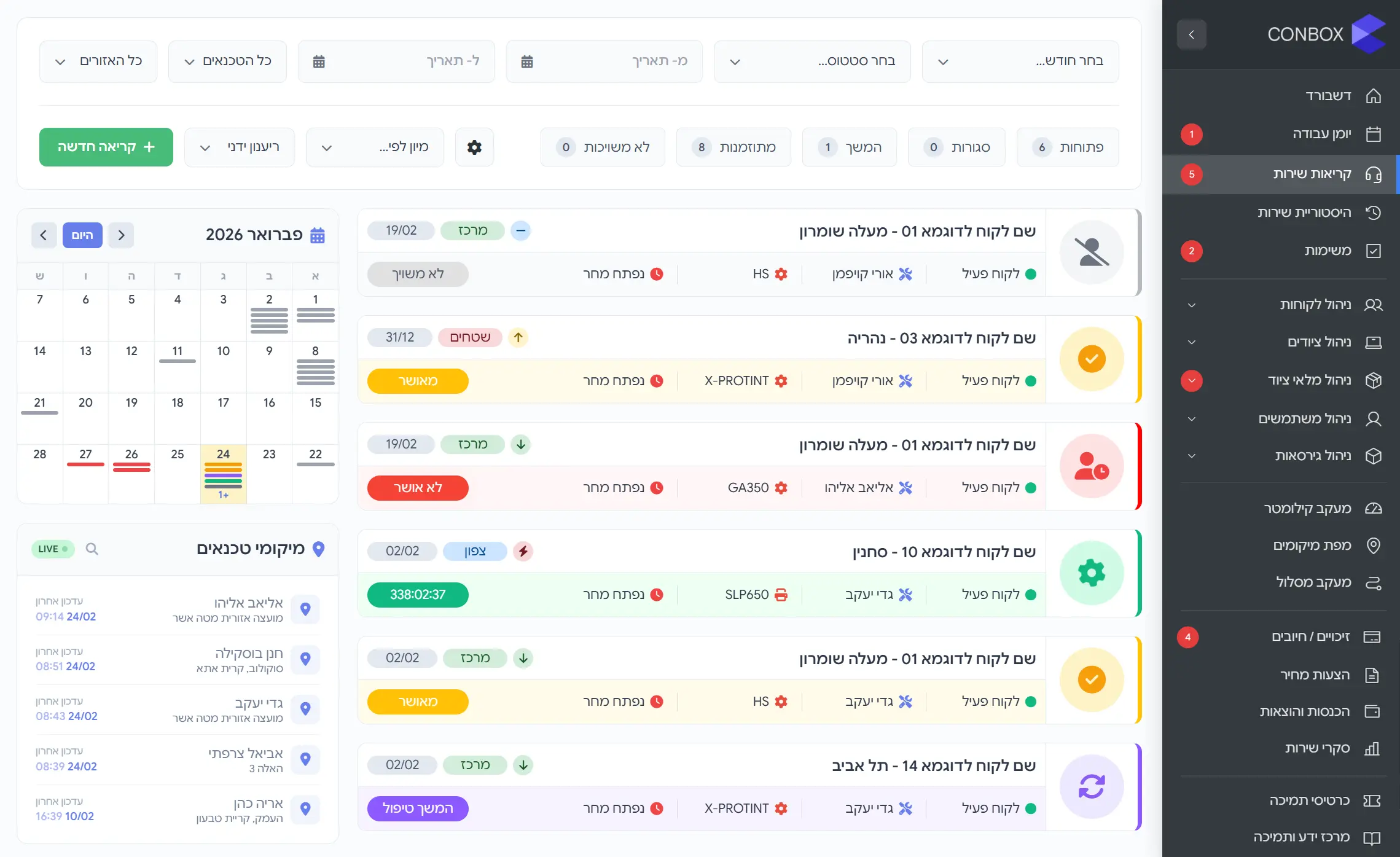 גלה איך מערכת CONBOX מבוססת ענן מרכזת את ניהול שירות השטח בפלטפורמה אחת חכמה - מקריאות שירות ועד ניתוח ביצועים, הכל בצורה מסודרת ורווחית